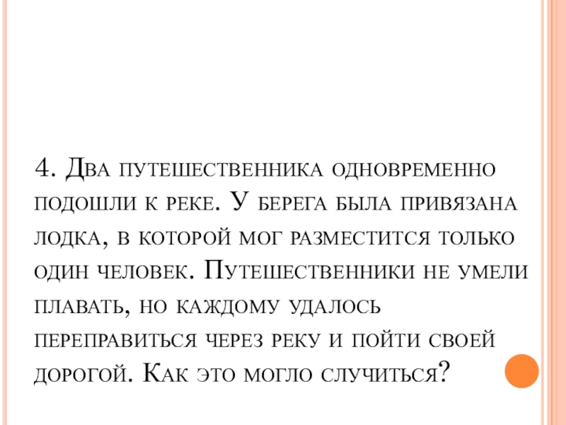 Слайд 134. Два путешественника одновременно подошли к реке. У берега была привязана