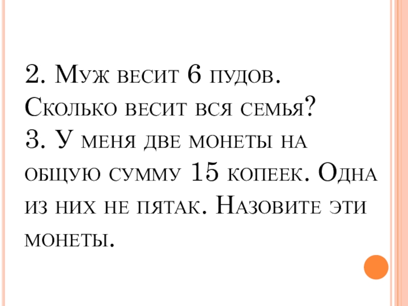 Слайд 122. Муж весит 6 пудов. Сколько весит вся семья?