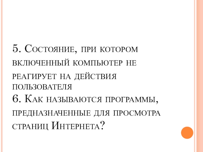 Слайд 395. Состояние, при котором включенный компьютер не реагирует на действия пользователя