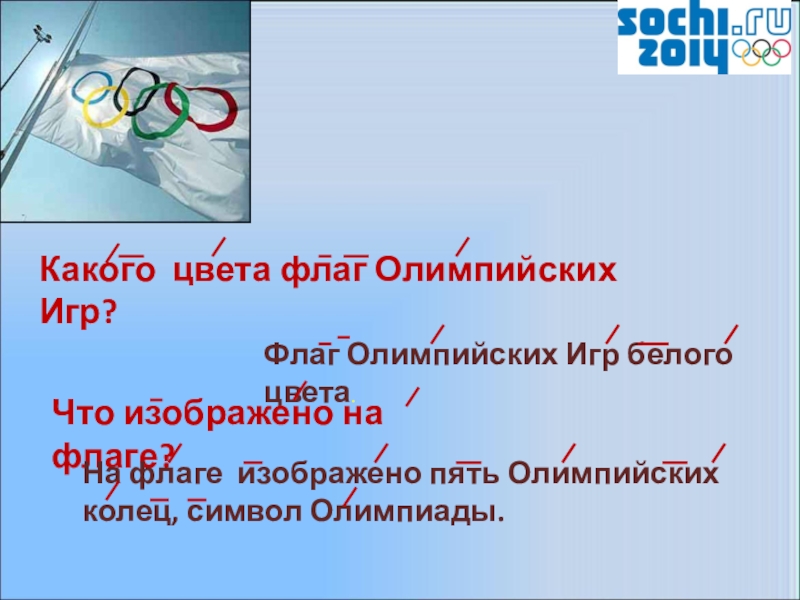 На флаге изображено пять Олимпийских колец, символ Олимпиады.