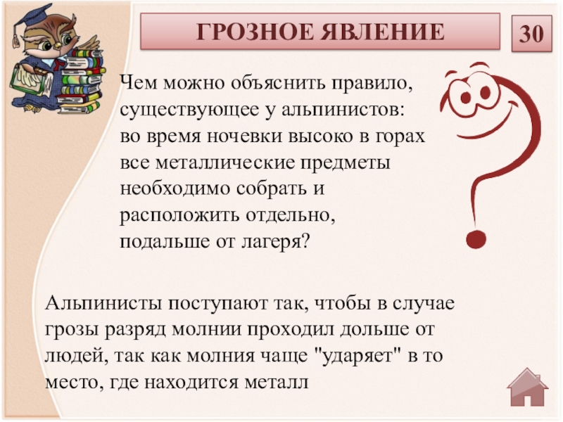 Чем можно объяснить правило, существующее у альпинистов: во время ночевки высоко в горах все металлические предметы необходимо собрать и расположить отдельно, подальше от лагеря?