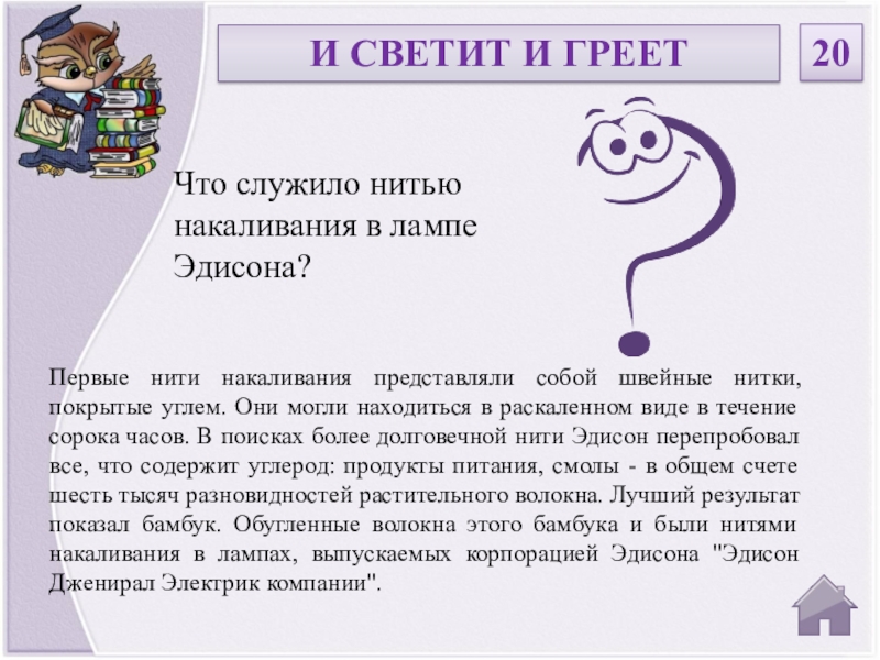 Что служило нитью накаливания в лампе Эдисона?