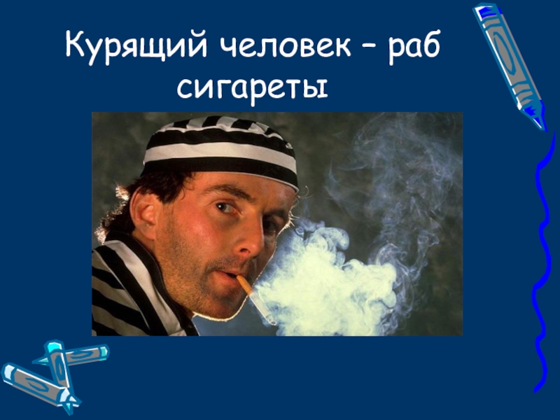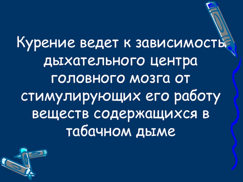 Слайд 4Курение ведет к зависимость дыхательного центра головного мозга от стимулирующих его