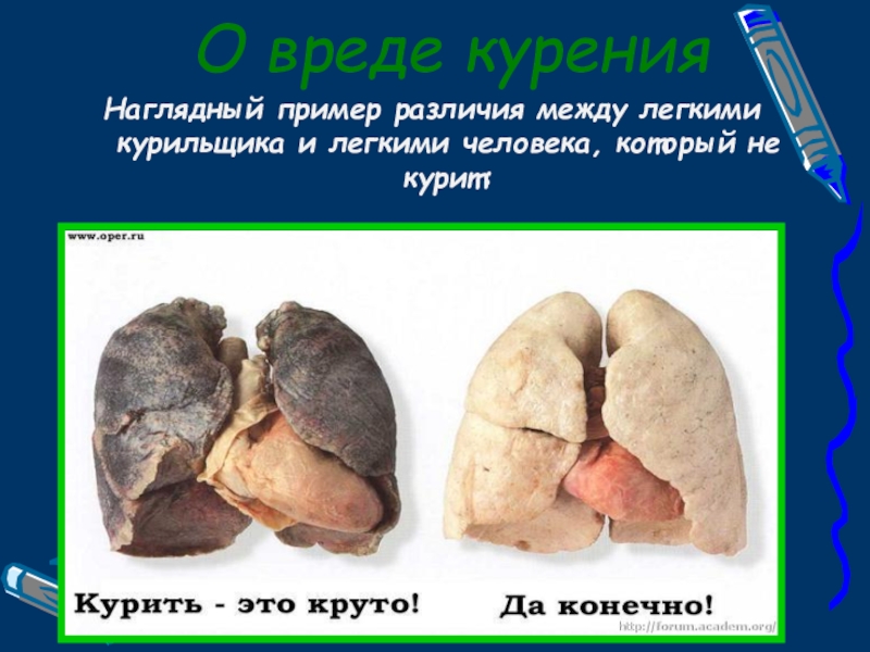 О вреде куренияНаглядный пример различия между легкими курильщика и легкими человека, который не курит: