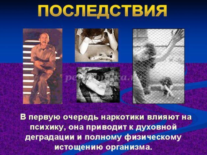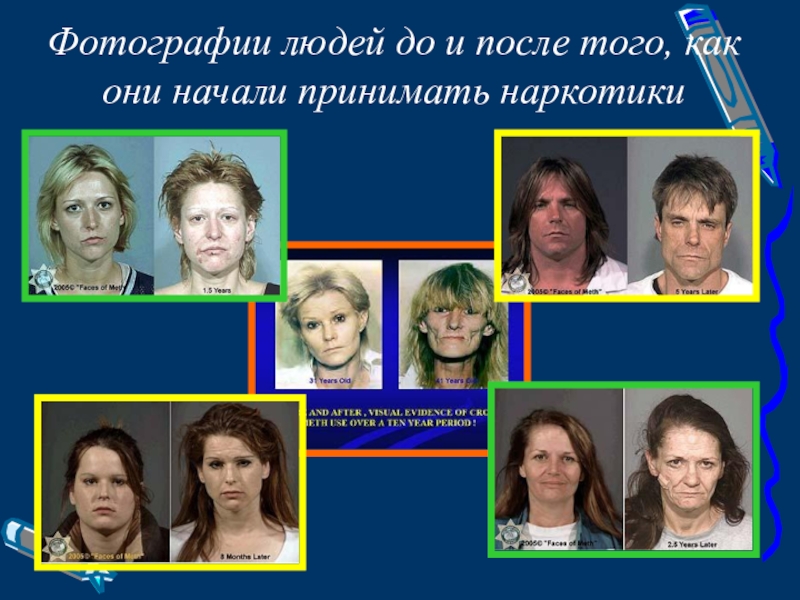 Слайд 19Фотографии людей до и после того, как они начали принимать наркотики