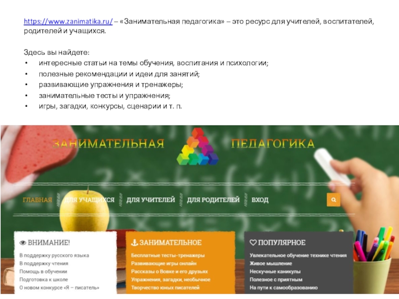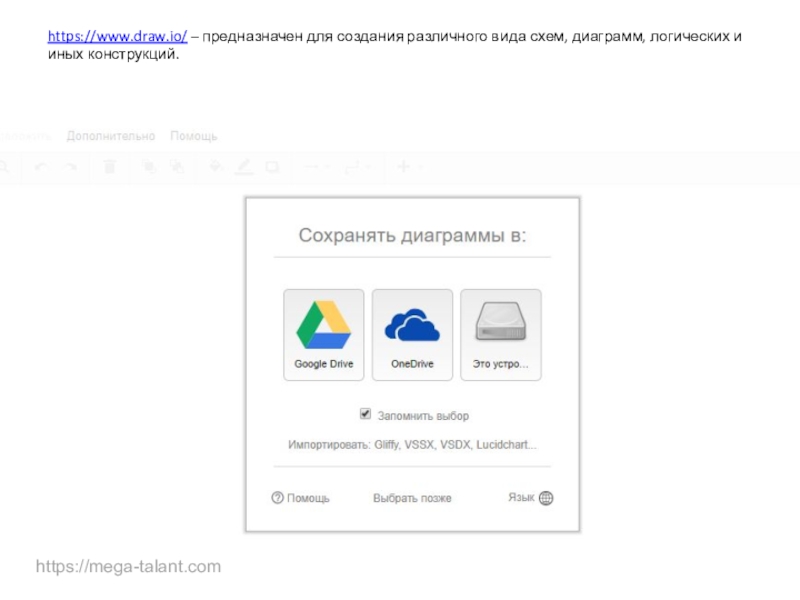 Это сайт презентаций, где можно хранить и обмениваться своими презентациями, докладами, проектами, шаблонами в формате PowerPoint с другими пользователями. Мы помогаем школьникам, студентам, учителям, преподавателям хранить и обмениваться учебными материалами.
