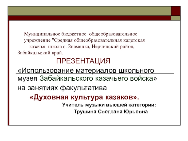«Использование материалов школьного музея Забайкальского казачьего войска»
