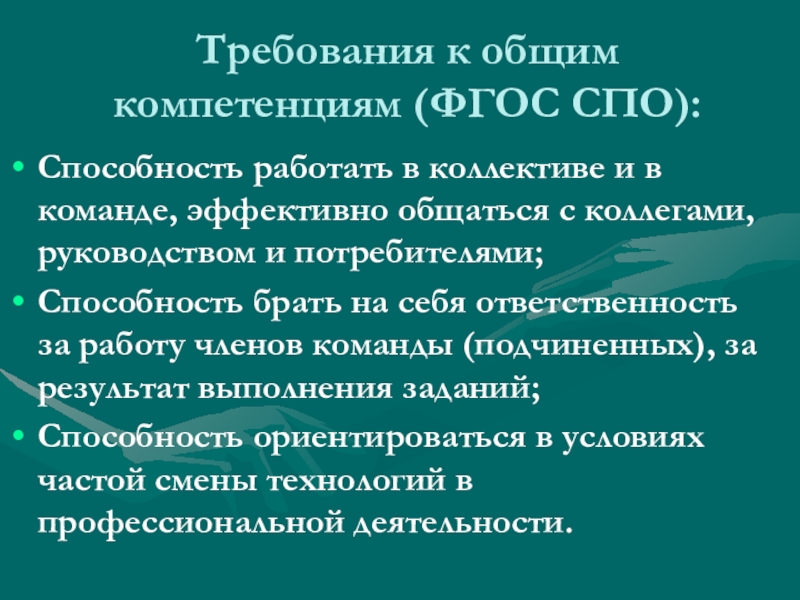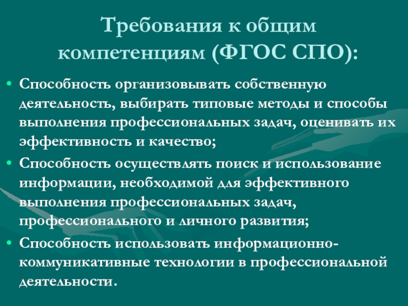 Слайд 3Требования к общим компетенциям (ФГОС СПО):