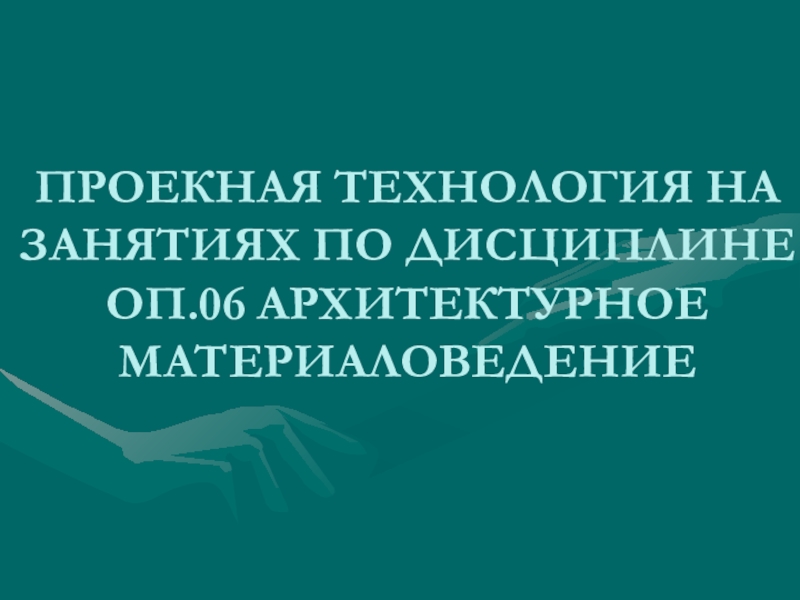 Слайд 1ПРОЕКНАЯ ТЕХНОЛОГИЯ НА ЗАНЯТИЯХ ПО ДИСЦИПЛИНЕ ОП.06 АРХИТЕКТУРНОЕ МАТЕРИАЛОВЕДЕНИЕ