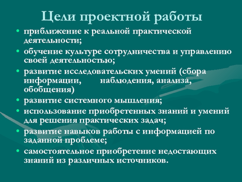 При этом важным являлось формулирование проблемы, знакомой и значимой для ребенка, при решении которой требовалось приложение полученных знаний. Возникало объективное условие для «движения» обучаемого от теории к практике, соединение академических знаний с практическими.