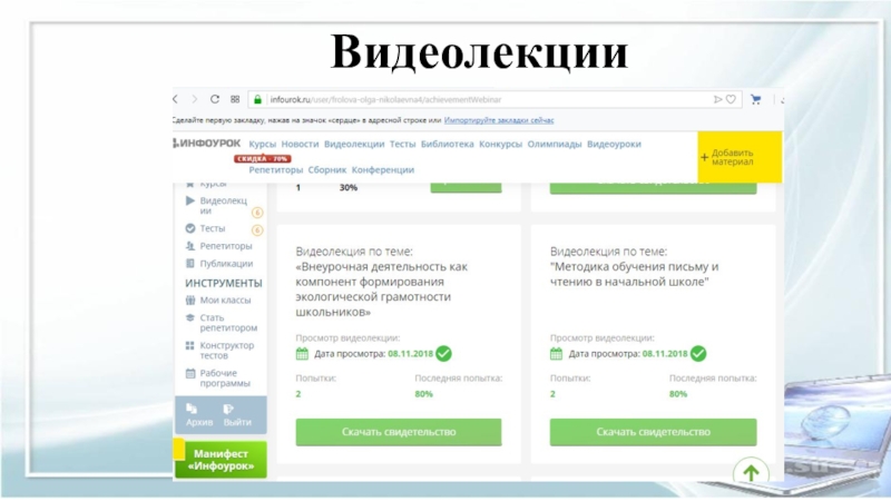 Сайт выступает одним из основных критериев при аттестации учителей.