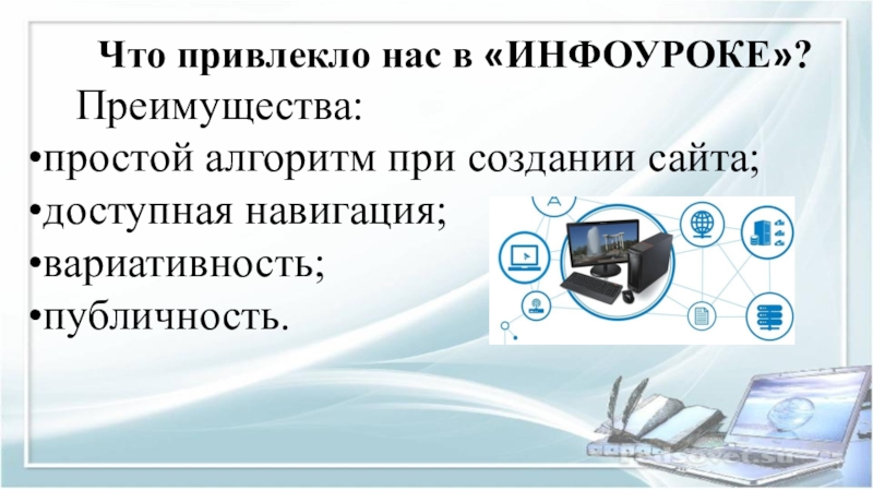Слайд 15Что привлекло нас в «ИНФОУРОКЕ»?