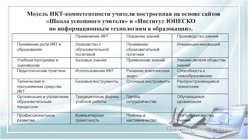 Слайд 6 Модель ИКТ-компетентности учителя построенная на основе сайтов