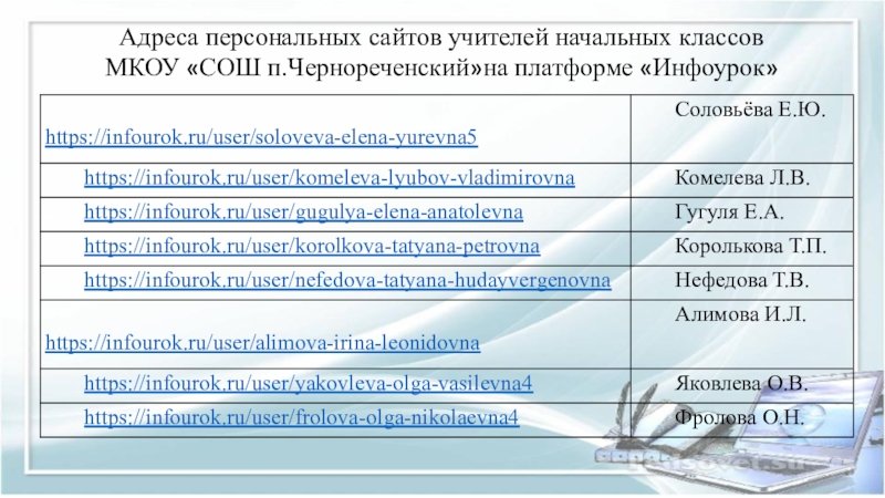 Слайд 33Адреса персональных сайтов учителей начальных классов