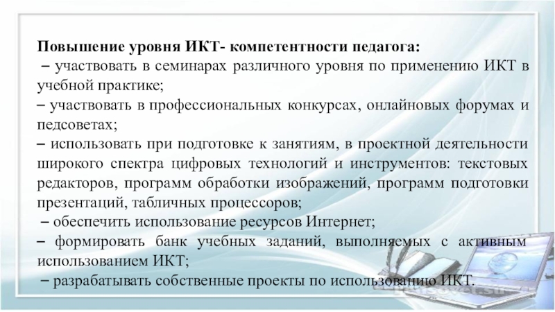 Слайд 5Повышение уровня ИКТ- компетентности педагога: