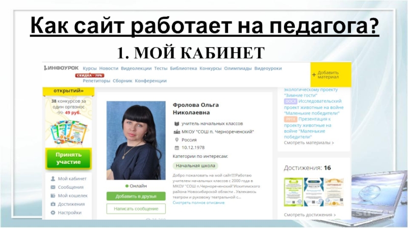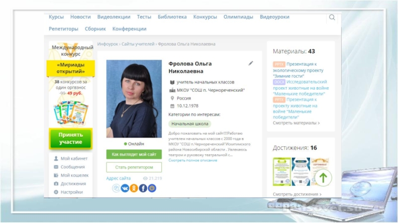 Сайт с качественными материалами показывает профессионализм и уровень компетентности учителя.