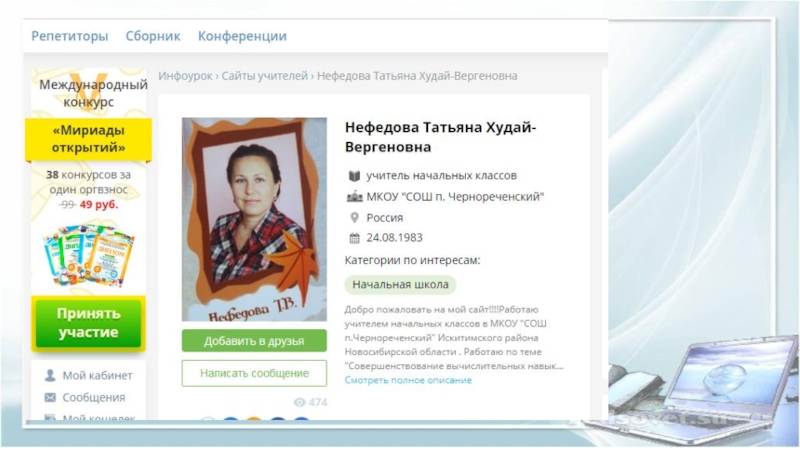 учителю позитивную репутацию, способствует развитию его общественного признания как современного и неравнодушного к жизни человека.