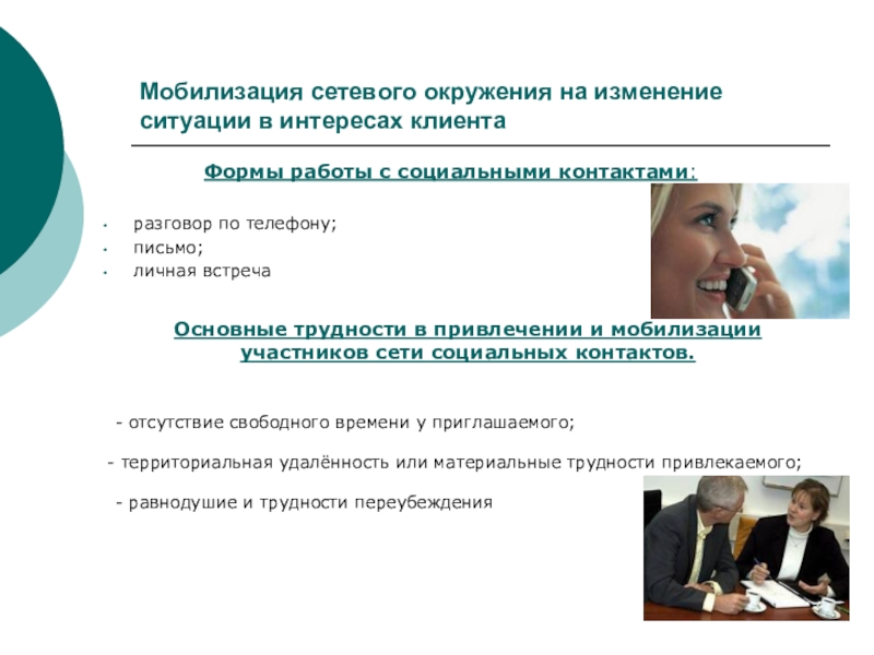 Основные трудности в привлечении и мобилизации участников сети социальных контактов.