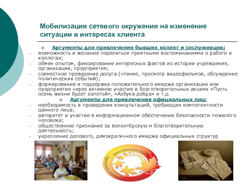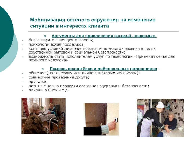 3. Составляет список людей, которых можно привлечь к участию в жизни пожилого человека