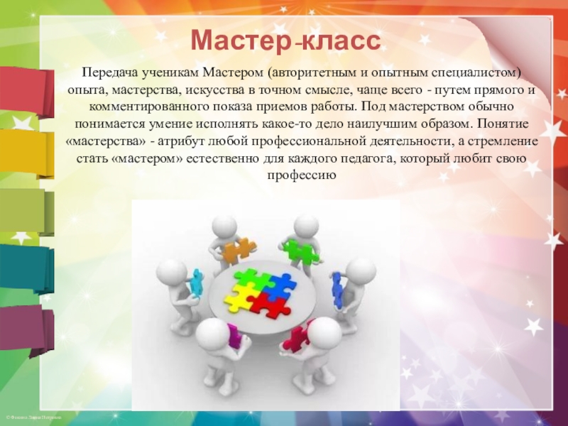 Передача ученикам Мастером (авторитетным и опытным специалистом) опыта, мастерства, искусства