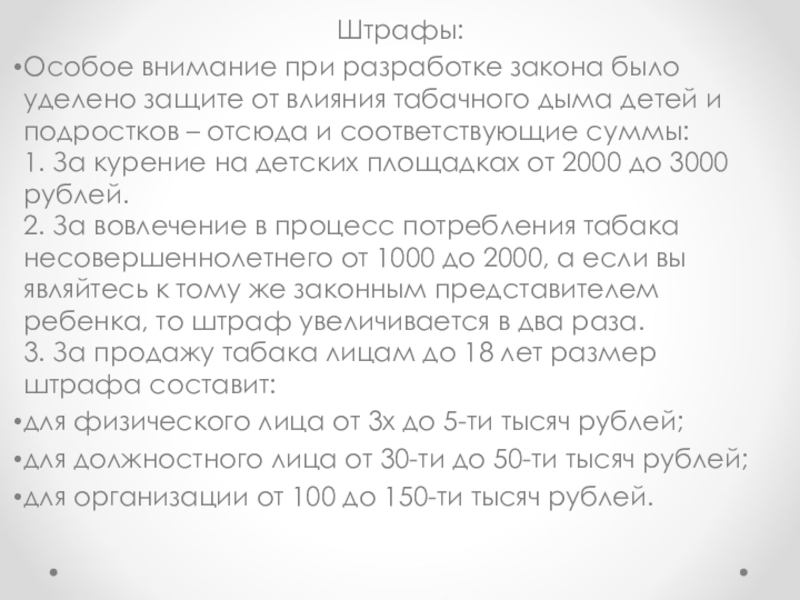 дыма детей и подростков – отсюда и соответствующие суммы: