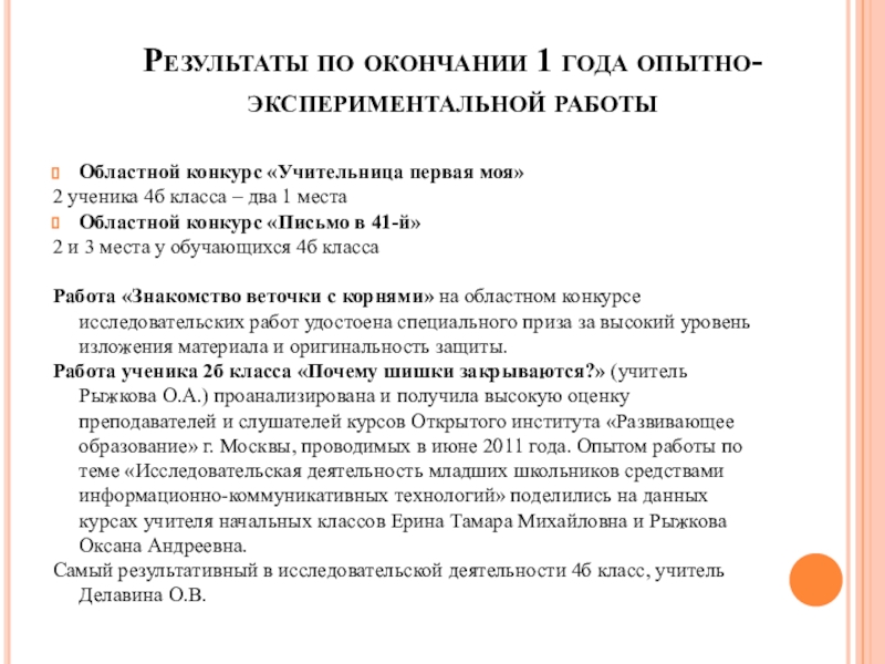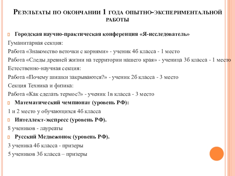 Результаты по окончании 1 года опытно-экспериментальной работы