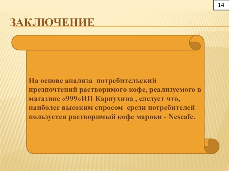 Потребители растворимого кофе магазин а«999» ИП Карпухина И.С.