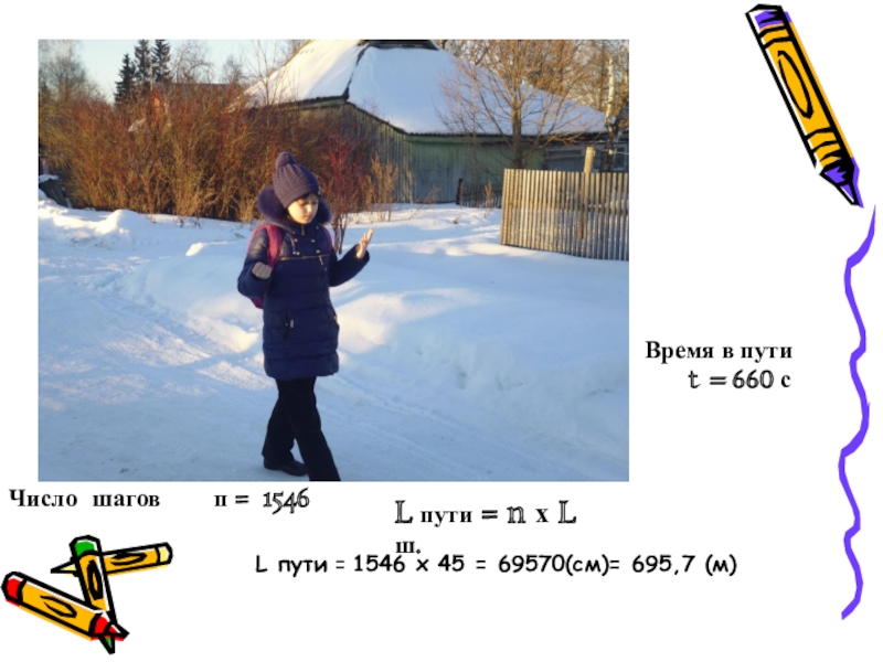 L пути = 1546 х 45 = 69570(см)= 695,7 (м)