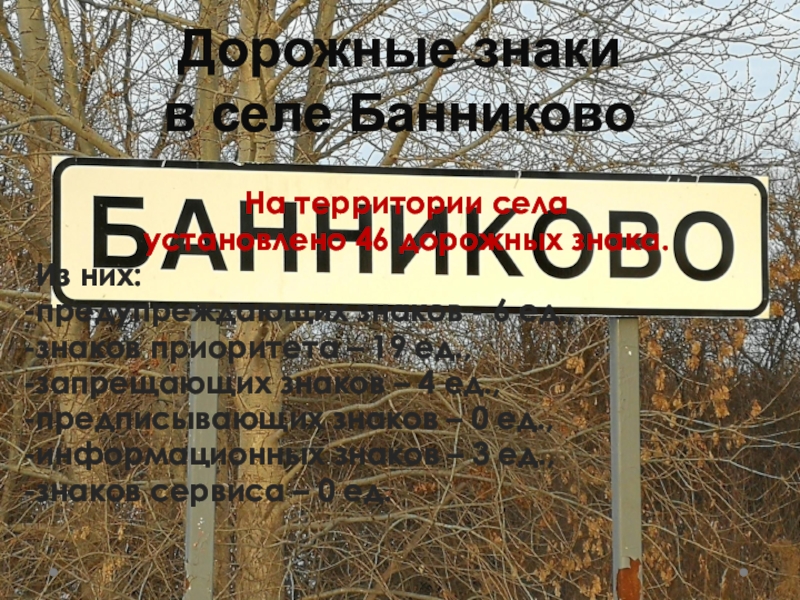 Изучить правила дорожного движения, дорожные знаки в с. Банниково.
