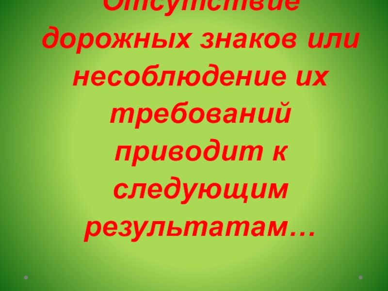 Слайд 34Отсутствие дорожных знаков или несоблюдение их требований
