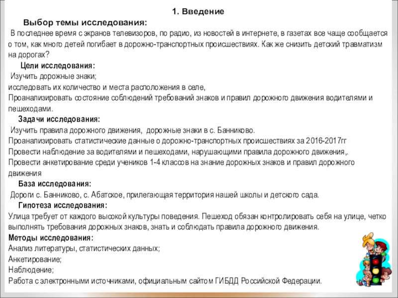 Работа с электронными источниками, официальным сайтом ГИБДД Российской Федерации.