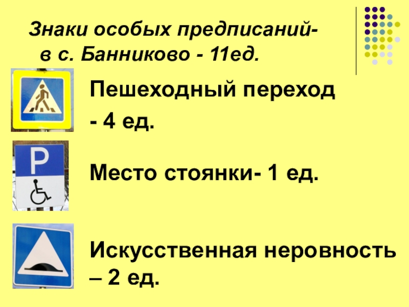 познакомились с существующими знаками дорожного движения в с. Банниково, подсчитали их, количество светофоров, «лежачих полицейских»;