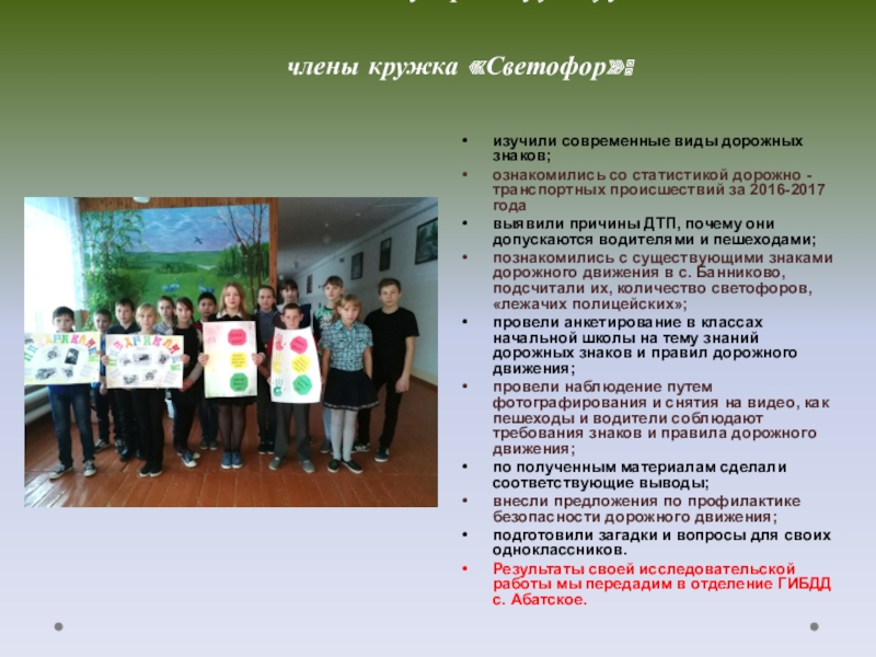 Результаты своей исследовательской работы мы передадим в отделение ГИБДД с. Абатское.