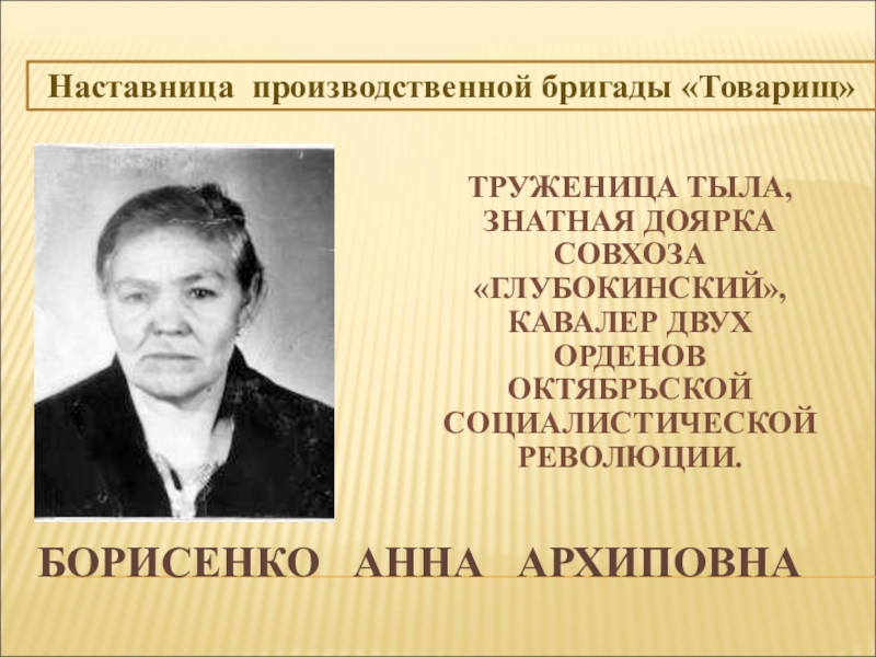 Наставница производственной бригады «Товарищ»