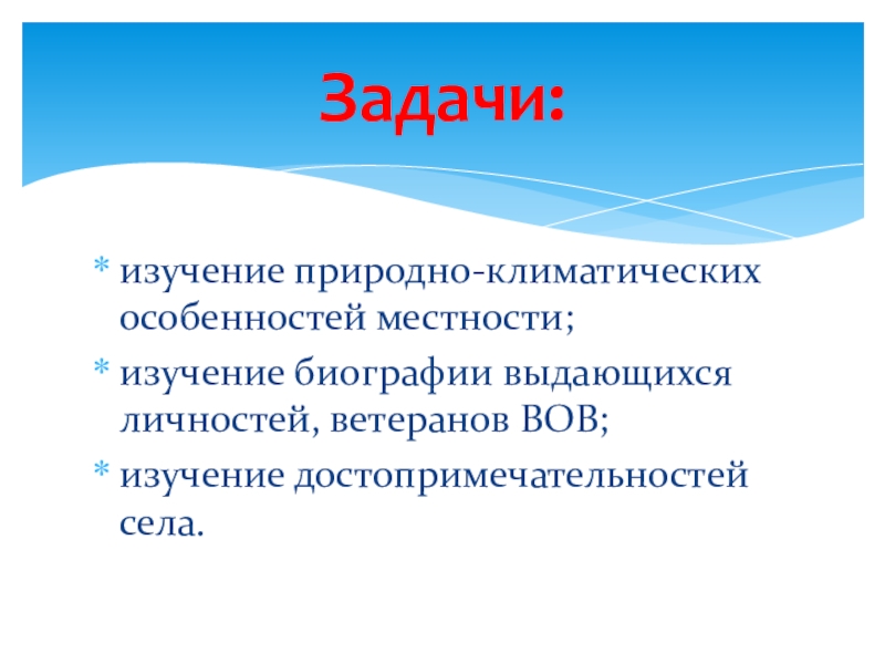 Слайд 3изучение природно-климатических особенностей местности;
