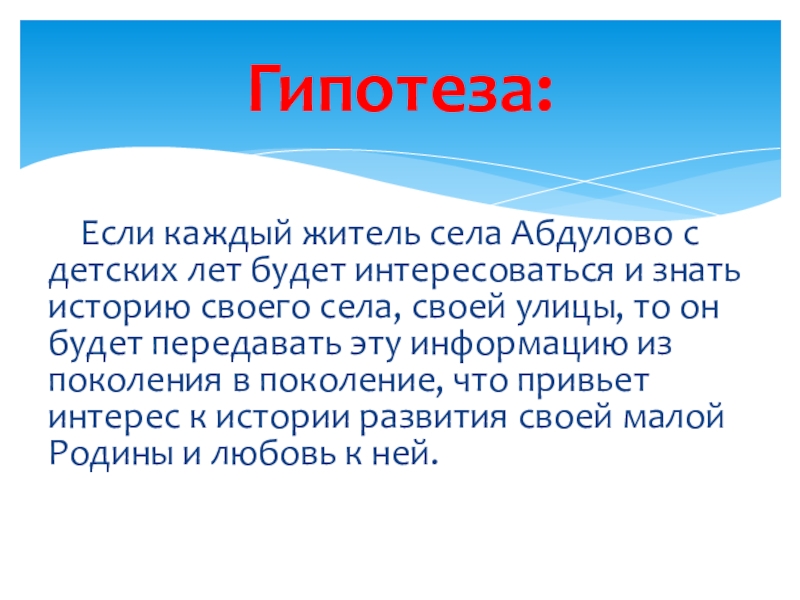 интересоваться и знать историю своего села, своей улицы, то он будет передавать эту информацию из поколения в поколение, что привьет интерес к истории развития своей малой Родины и любовь к ней.