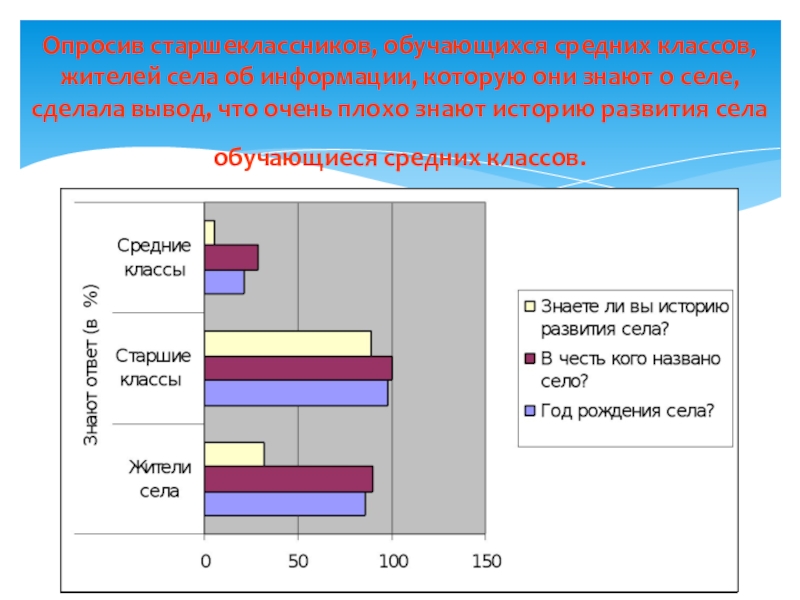 знают о селе, сделала вывод, что очень плохо знают историю развития села обучающиеся средних классов.