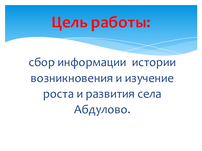 Слайд 2сбор информации истории возникновения и изучение роста и развития села Абдулово.