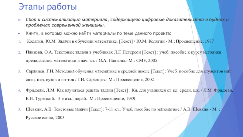 Панкова, О.А. Текстовые задачи в учебниках Л.Г. Петерсон [Текст] : учеб. пособие к курсу методики преподавания математики в нач. кл. / О.А. Панкова.- М.: СМУ, 2005
