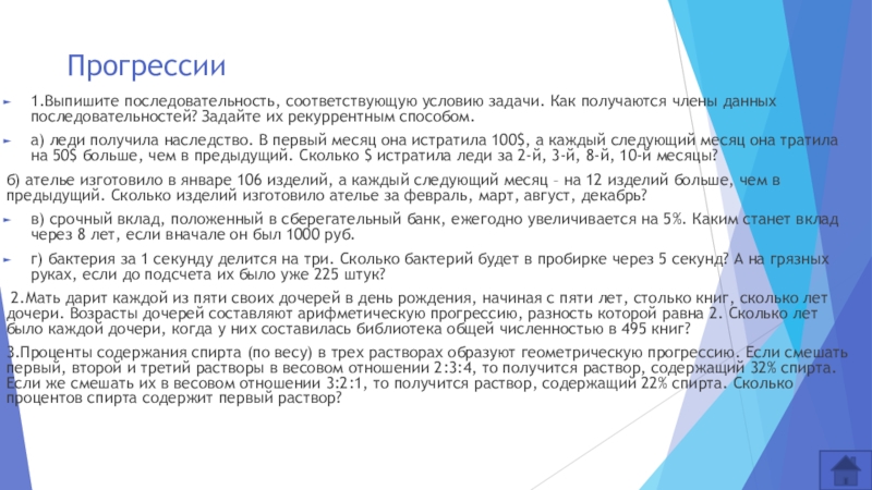 1.Выпишите последовательность, соответствующую условию задачи. Как получаются члены данных последовательностей?