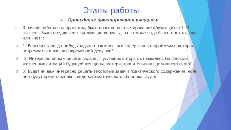 Слайд 7Этапы работы