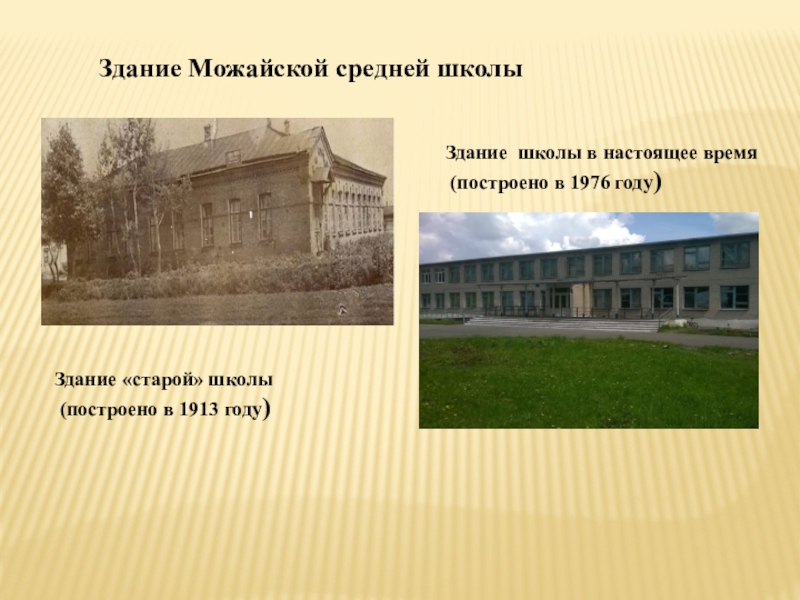 Здание Можайской средней школыЗдание «старой» школы (построено в 1913 году)Здание школы в настоящее время (построено в 1976