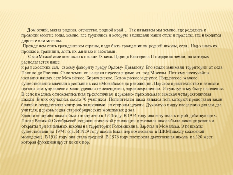 Слайд 1«История образования в СЕЛЕ Можайское»