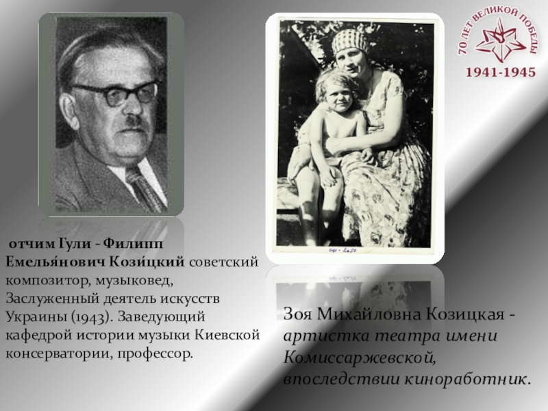 Зоя Михайловна Козицкая -артистка театра имени Комиссаржевской, впоследствии киноработник.