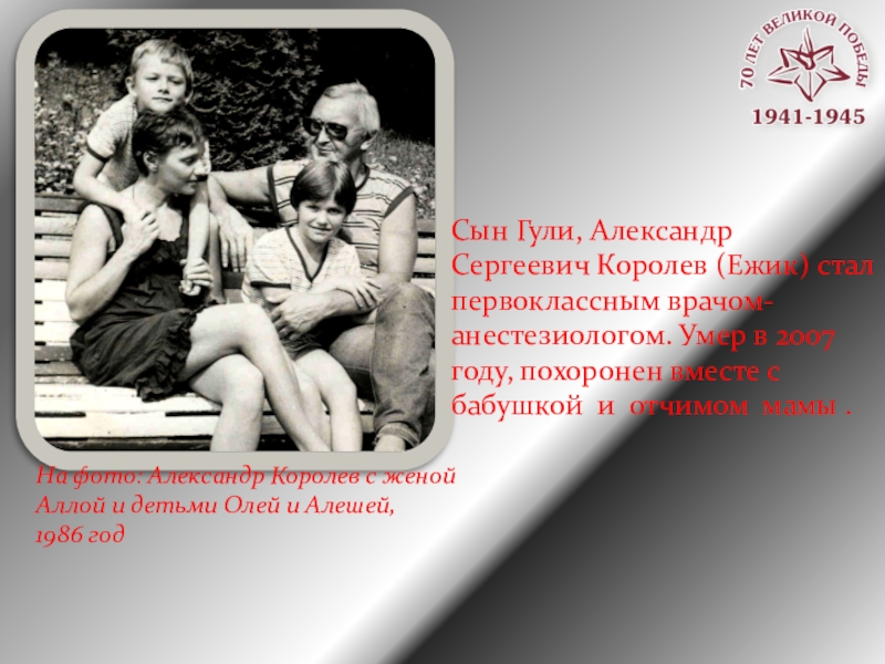 На фото: Александр Королев с женой Аллой и детьми Олей и Алешей,