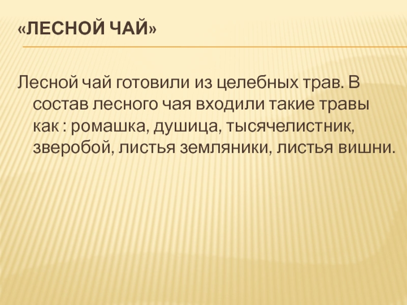 Лесной чай готовили из целебных трав. В состав лесного чая