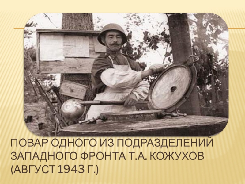 Слайд 24Повар одного из подразделений Западного фронта Т.А. Кожухов (август 1943 г.)