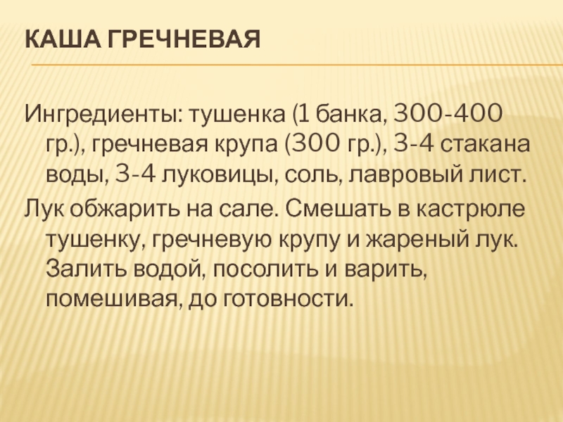 Ингредиенты: тушенка (1 банка, 300-400 гр.), гречневая крупа (300 гр.),