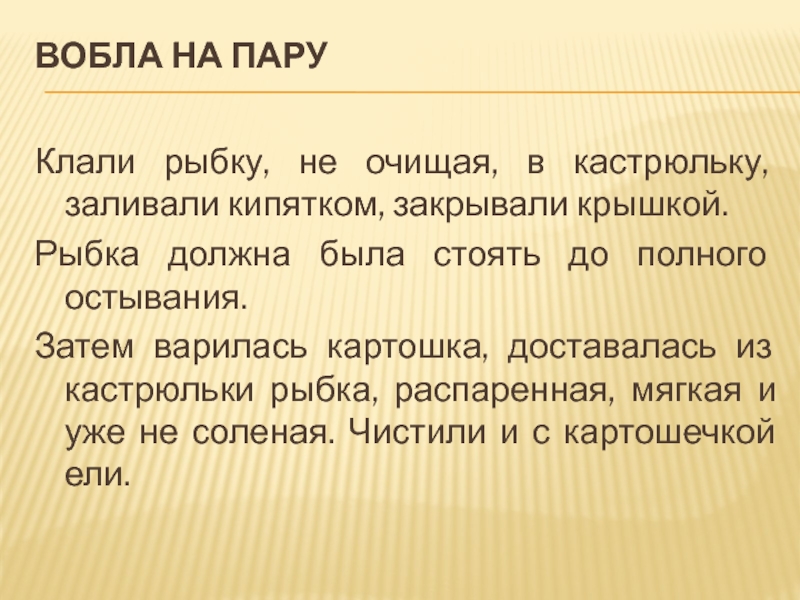 Клали рыбку, не очищая, в кастрюльку, заливали кипятком, закрывали