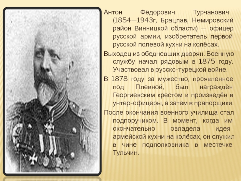 Слайд 19Антон Фёдорович Турчанович (1854—1943г, Брацлав, Немировский район Винницкой области) — офицер